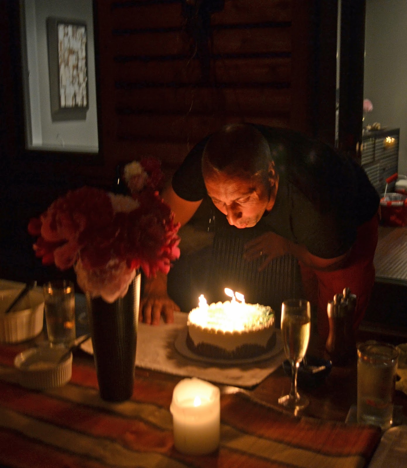 After sunset: dinner by candlelight, music, dancing, birthday cake...
